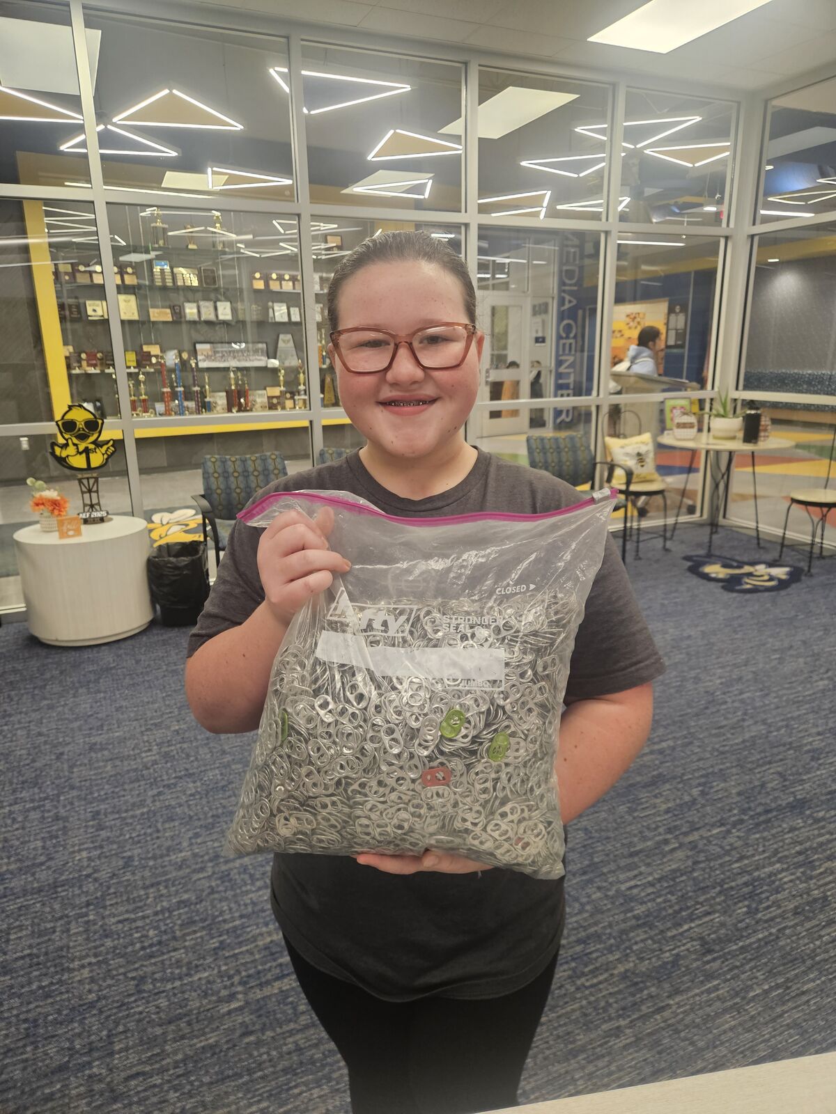 KHS Stuco collects pop can tabs to support Ronald McDonald House. KJH student Lilly's family has been saving to donate to this worthy cause. This is what we call support!! Will you show your support t. . .