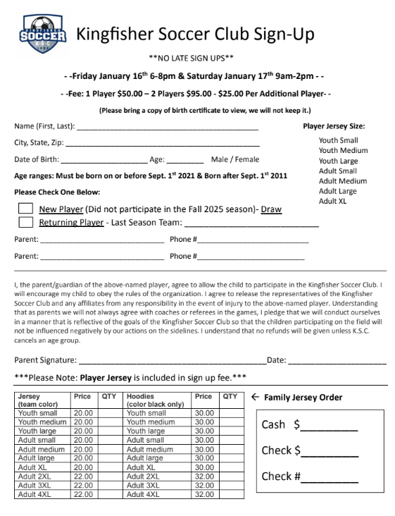 Kingfisher Soccer Club Sign up