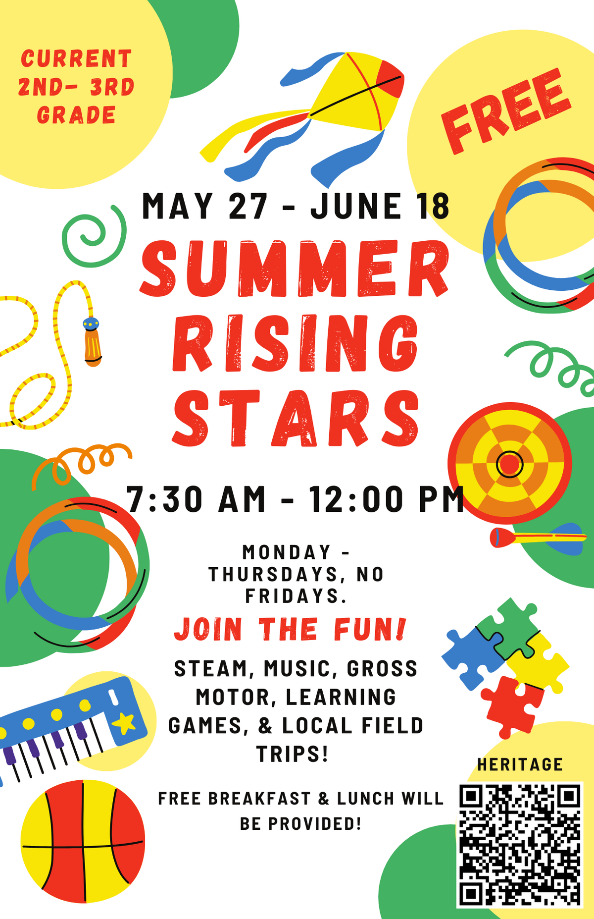 Join us May 27 – June 18, Monday - Thursday from 7:30-12:00 for a fun-filled summer of learning, hands-on activities, and local field trips. Free breakfast and lunch will be provided each day. We c...