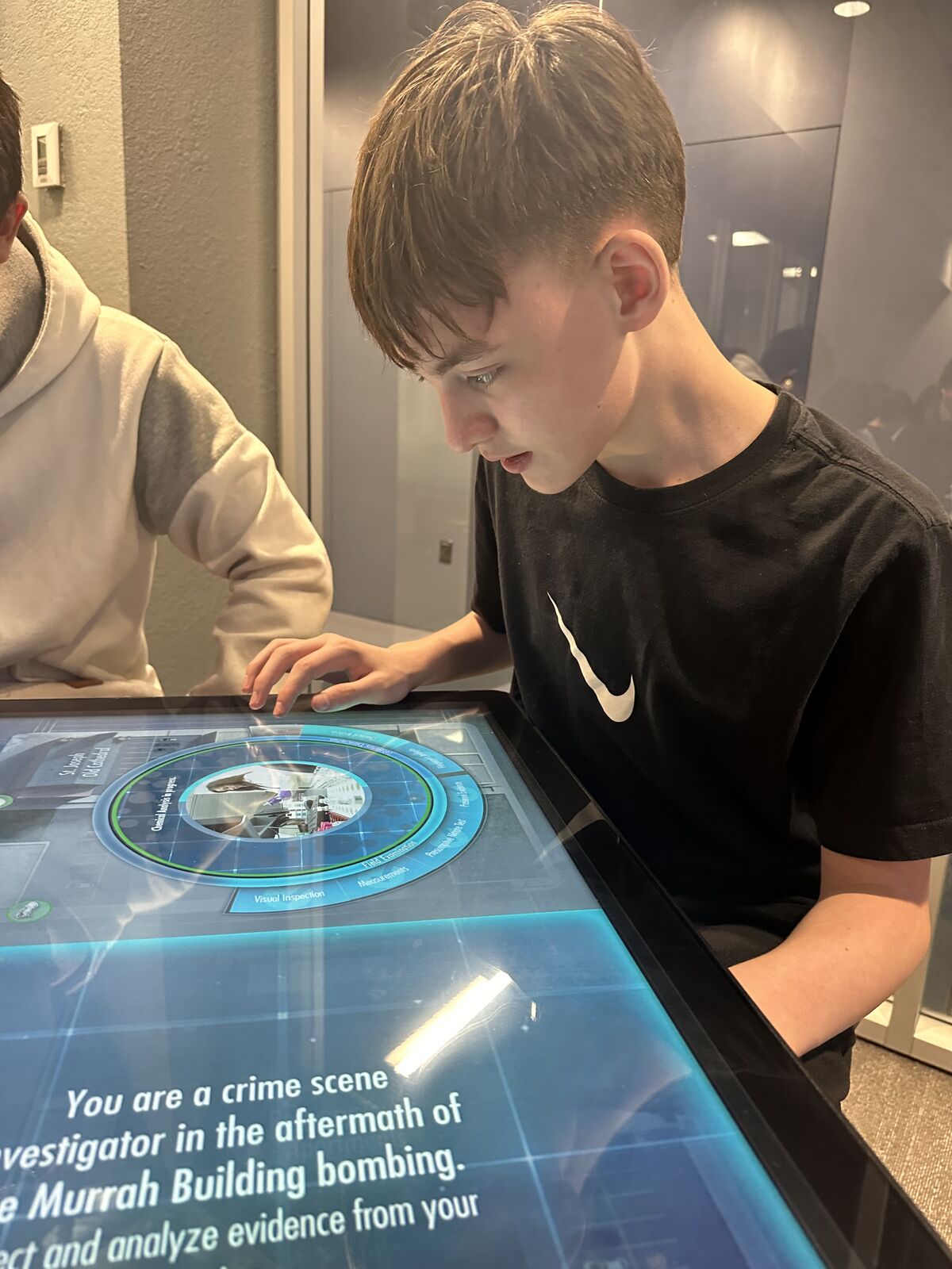 After learning more about the OKC bombing, they were given a bag full of shredded paper and told to find the single piece of paper with the VIN on it. We have some future detectives in our building!