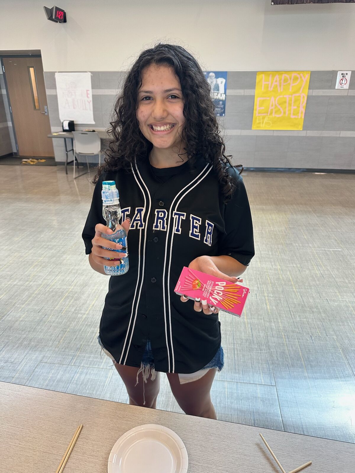 Mrs. Daugherty's 7th grade Geography class is beginning their study of Asia. To kick it off, they had a Chopstick Challenge in each hour. The 5 winners, Kynsli Moyeda, Shaileigh Ortiz, Beau Brueggen, Eva Franco and McKenzy Wilson, faced off at lunch today. Kynsli was the winner!!